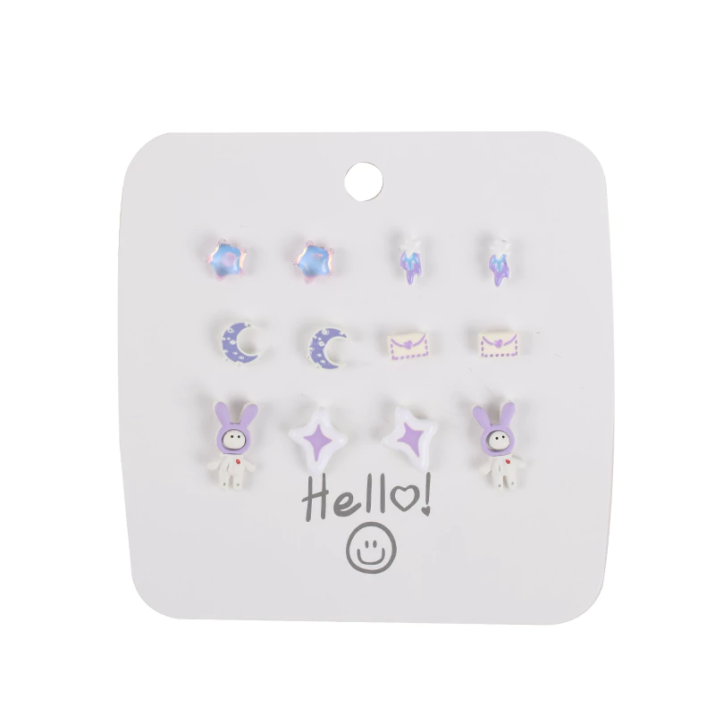 Bunny Stud Earrings Set 6 Pairs quantity