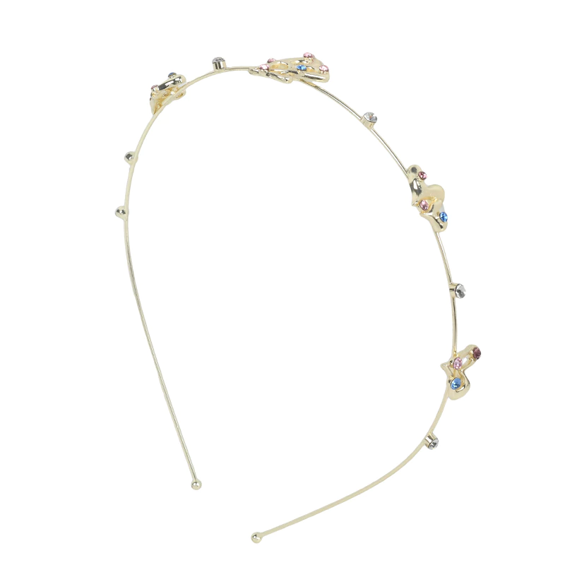 Colorful Rhinestone Heart Metal Hair Band - Gold