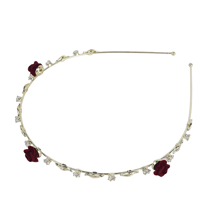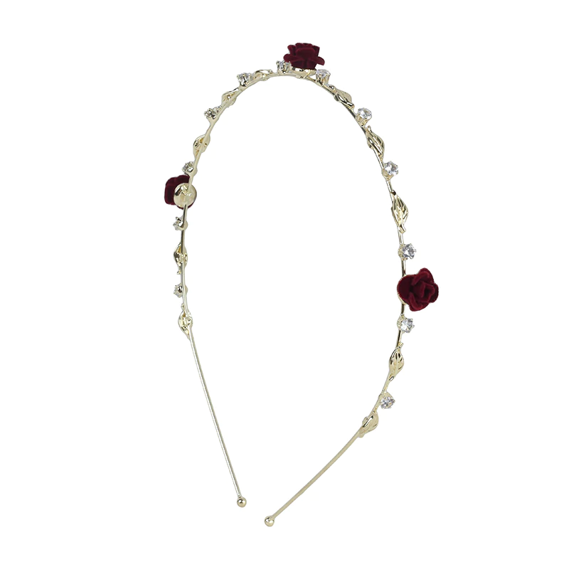 Flocked Rose Metal Head Band - Gold