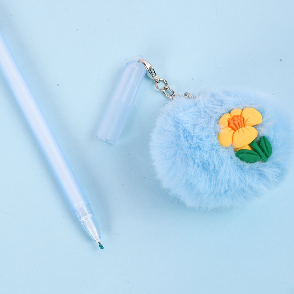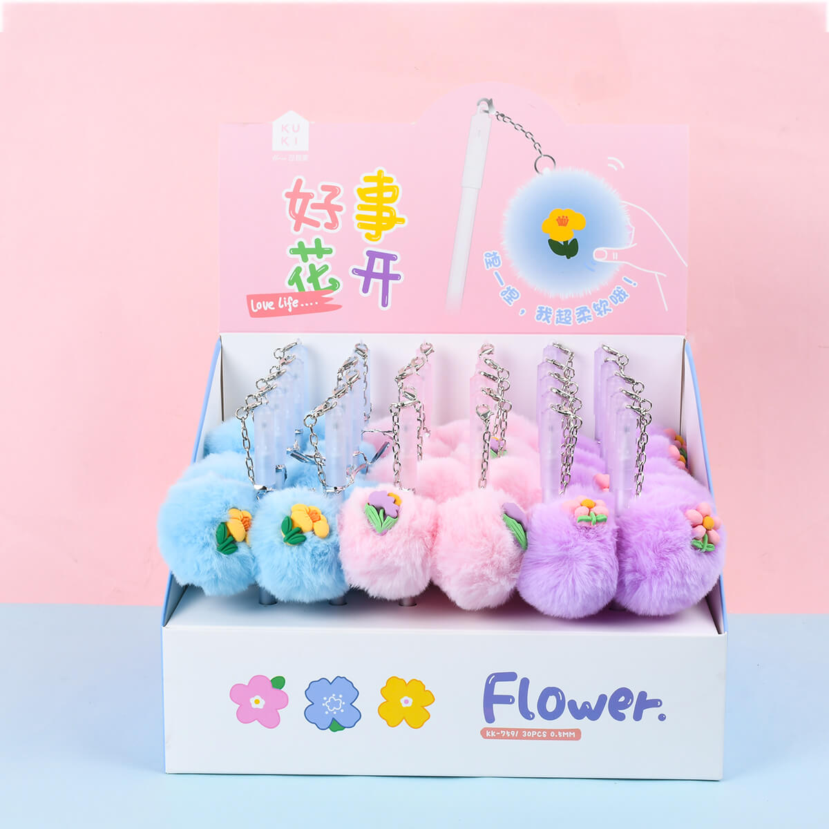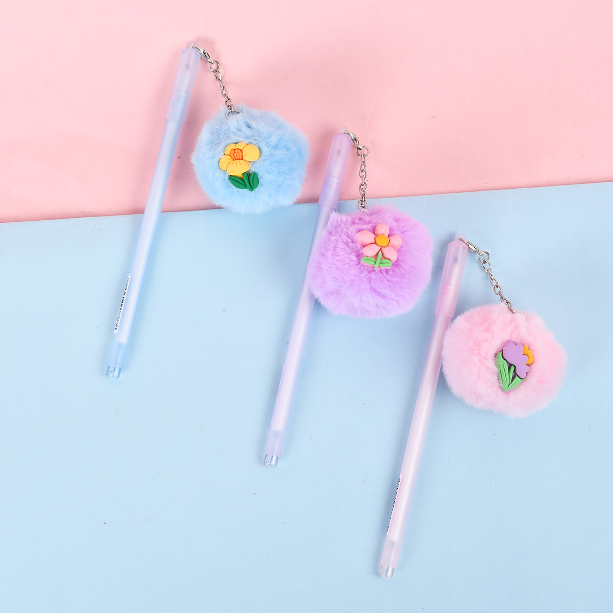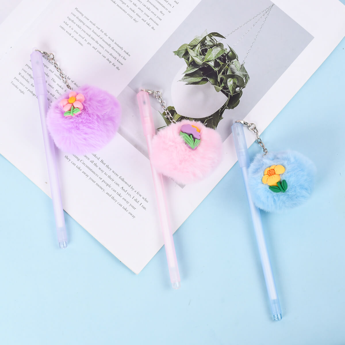Flower Fur Ball Pendant Gel PenFlower Fur Ball Pendant Gel Pen