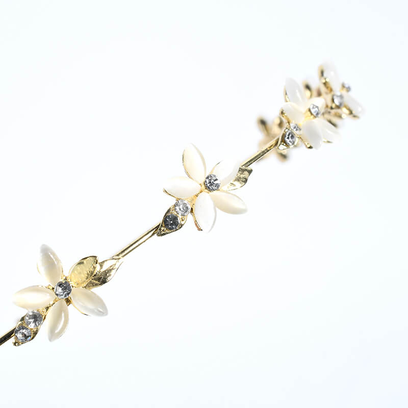 Cat's Eye Stone Flower Metal Hairband-Gold