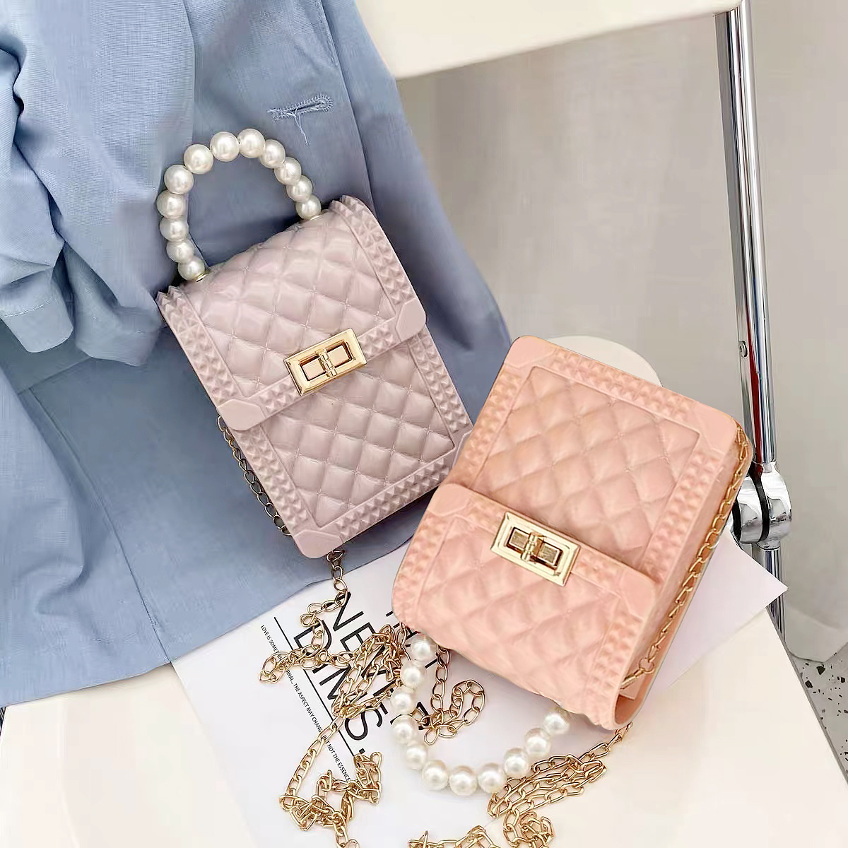 Handle Bag Pearl Chain Jelly Handbag Simple Top