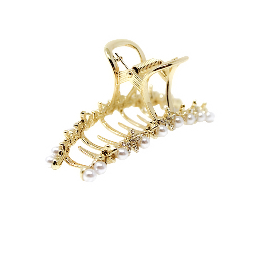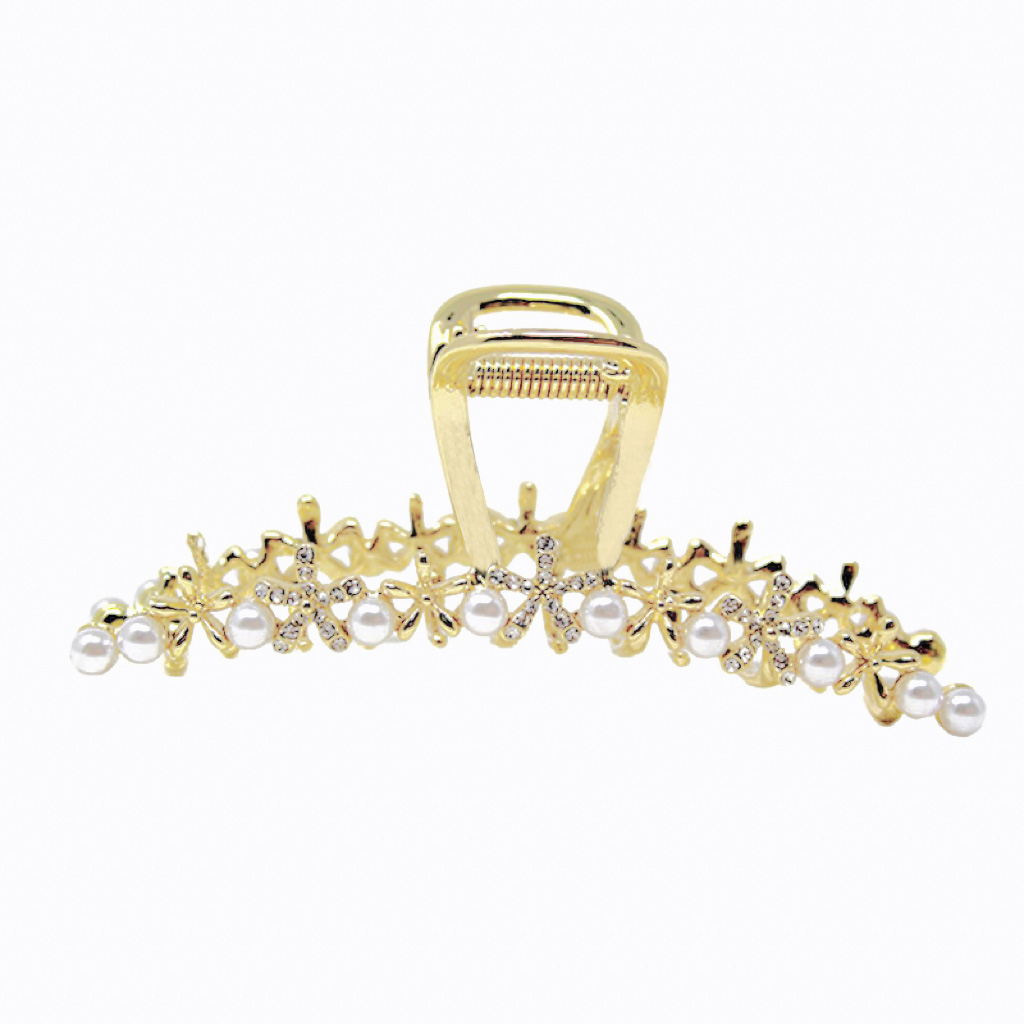 Flower Hair Claw Clip Gold Metal Pearl quantity