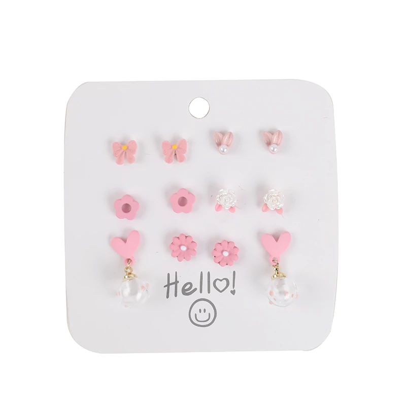 Pink Girl Stud Earrings Set 6 PairsPink Girl Stud Earrings Set 6 Pairs