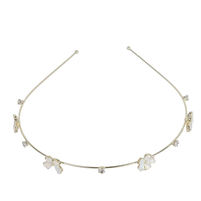 Glass Flower and Cubic Zirconia Hair Clip-Gold
